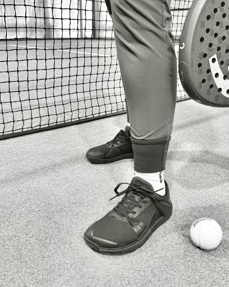 Foot-shaped. Neutral. Grippy.Cushioned enough for long matches and connected enough for precise footwork.